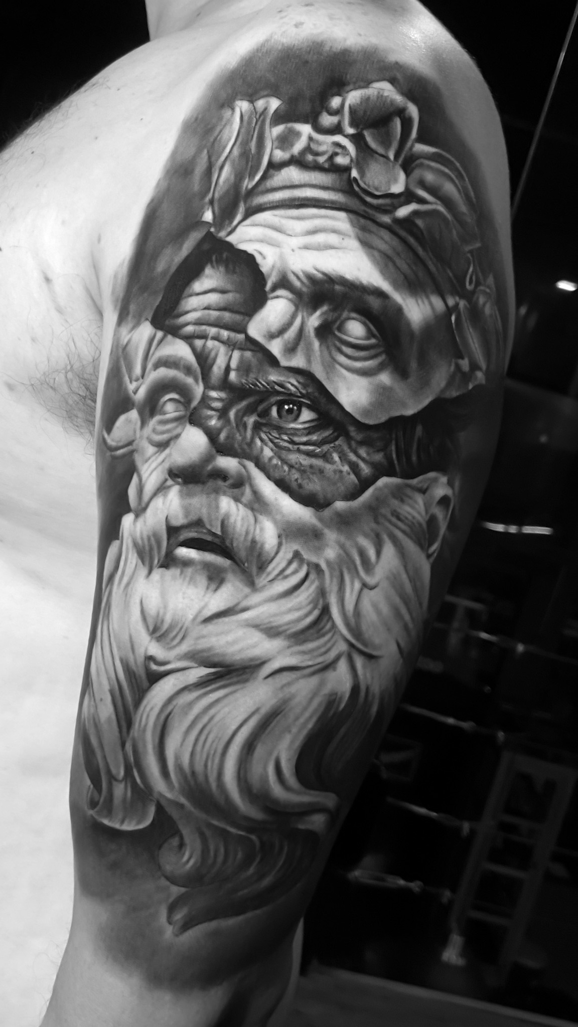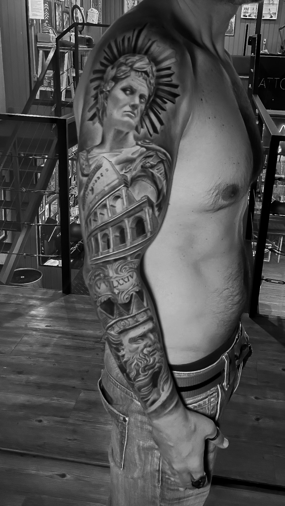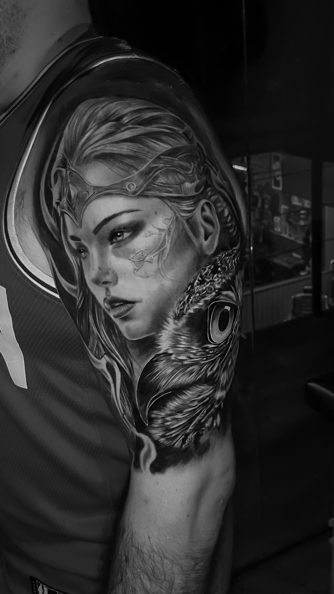 Escolhi a tatuagem como forma de expressão artística e o realismo preto e cinza como meu estilo.